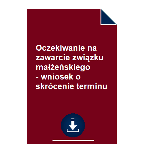 - wniosek o skrócenie terminu oczekiwania na zawarcie związku małżeńskiego – złożony osobiście przed kierownikiem Urzędu Stanu Cywilnego lub elektronicznie (za pomocą podpisu elektronicznego lub Profilu Zaufanego);
