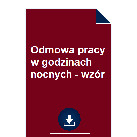 Dla celów dowodowych odmowę pracy w godzinach nocnych należy sporządzić w formie pisemnej. Pracownik może przygotować stosowny dokument w oparciu o nasz – gotowy do wypełnienia wzór odmowy pracy w godzinach nocnych.