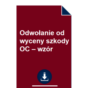 Pismo można przygotować w oparciu o nasz wzór odwołania od wyceny szkody OC, uzupełniając go o materiał dowodowy, taki jak:
