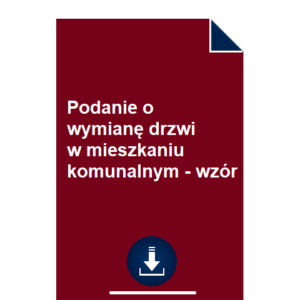 Wzór podania o wymianę drzwi w mieszkaniu komunalnym ułatwia przygotowanie pisma do gminy, w którym lokatorzy poproszą o przeprowadzenie stosownego remontu.